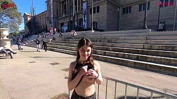 هذه المرأة الشهوانية تعرض ثدييها في الأماكن العامة مقابل المال